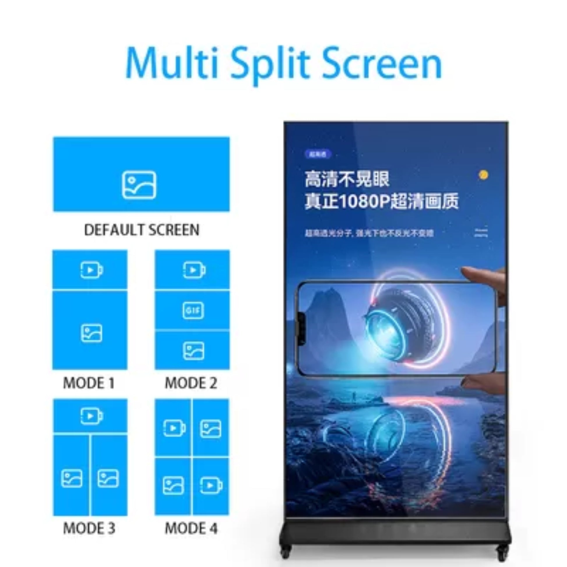 Tela Fullscreen 75 Polegadas Full HD 4K Android 11 450 NITS, Borda Infinita, Com Suporte Móvel, Sem Touchscreen, WI-FI, Bluetooth