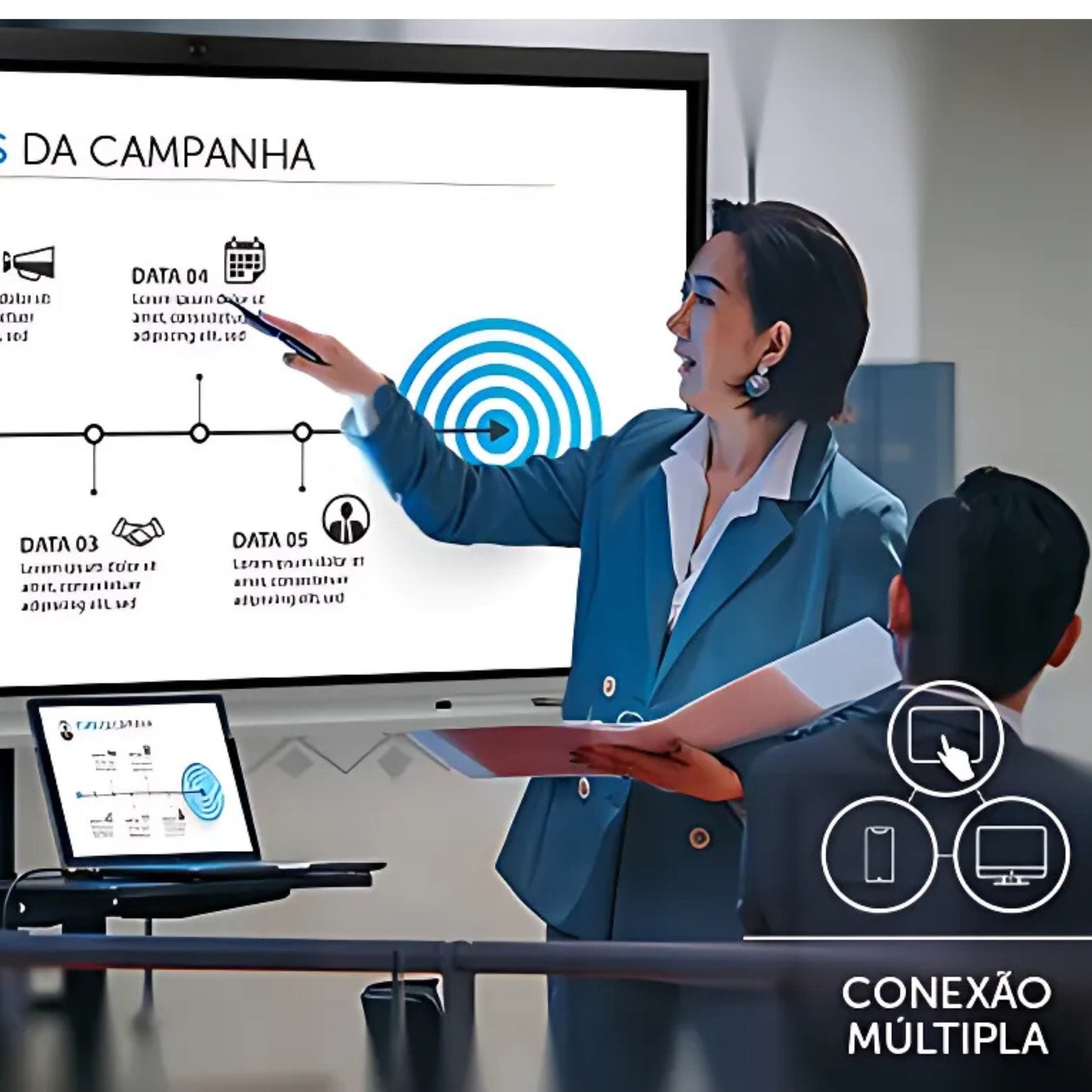 A Tela Interativa de 65” combina tecnologia de ponta, interatividade e recursos inovadores para transformar o aprendizado, reuniões corporativas e apresentações. Ideal para ambientes educacionais e empresariais, oferece uma experiência intuitiva e eficiente.